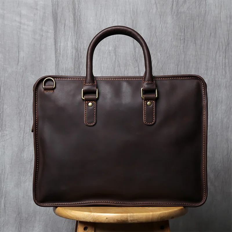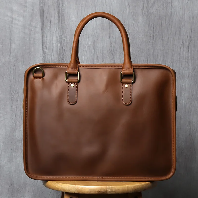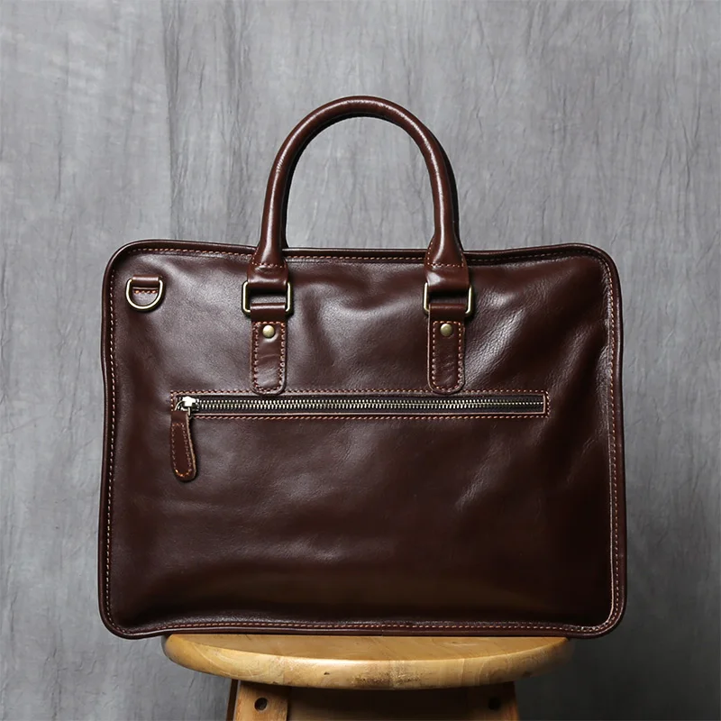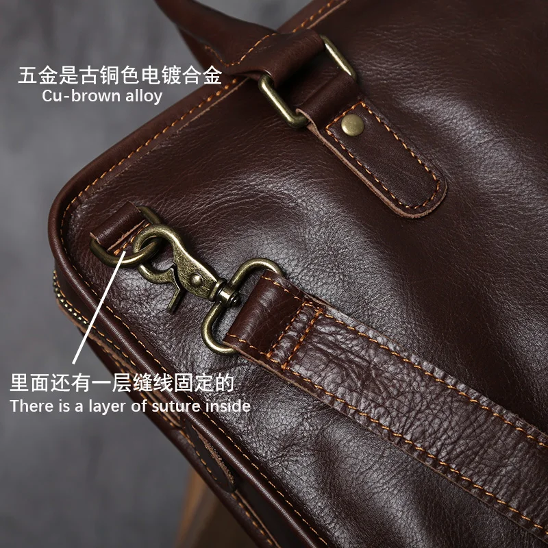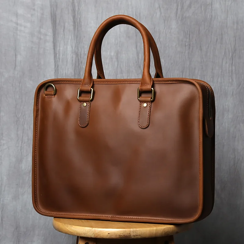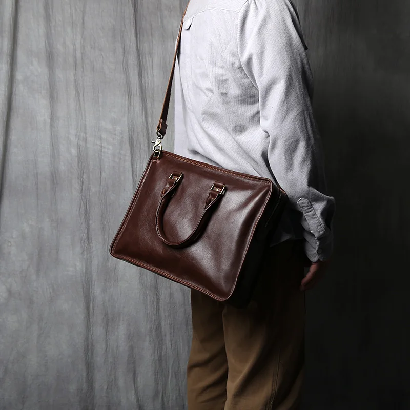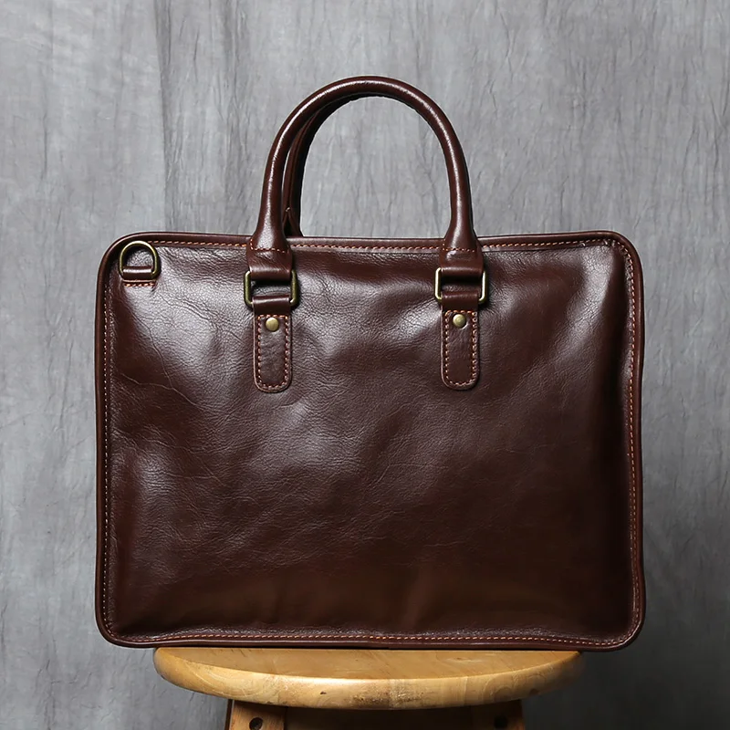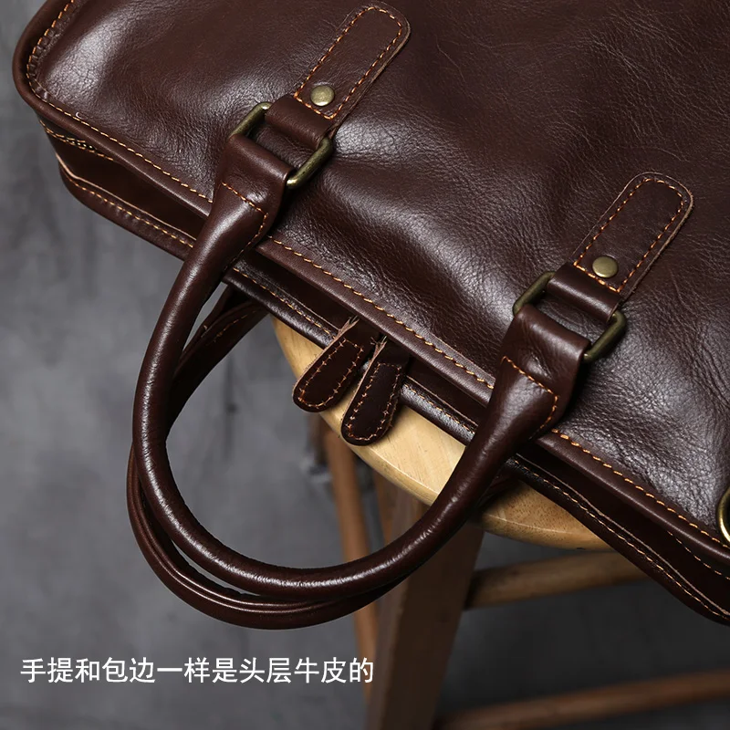 NZPJ Vintage porte-documents en cuir véritable pour hommes sac à main en peau de vache naturelle sac à bandoulière décontracté ordinateur adapté aux ordinateurs portables de 14 pouces