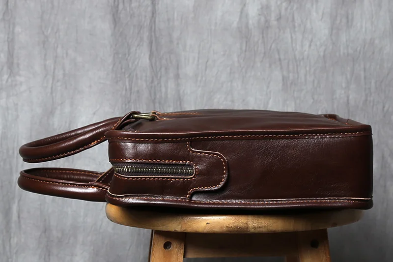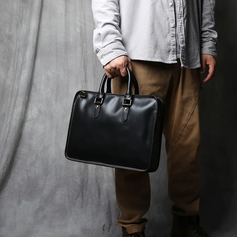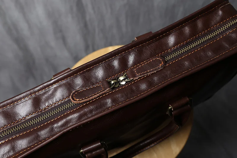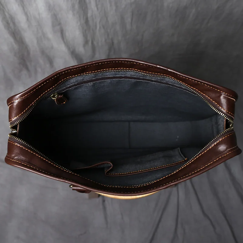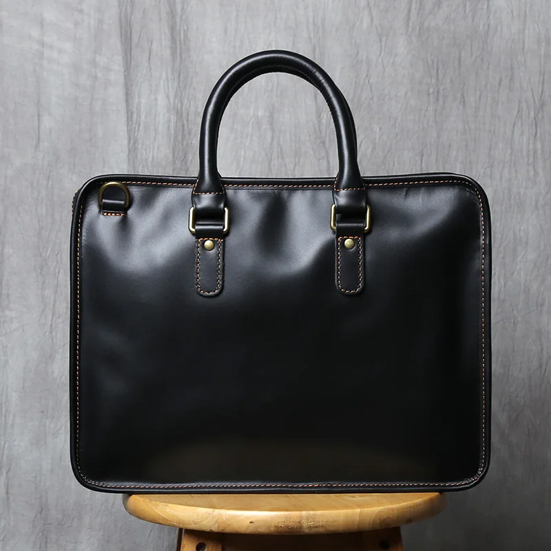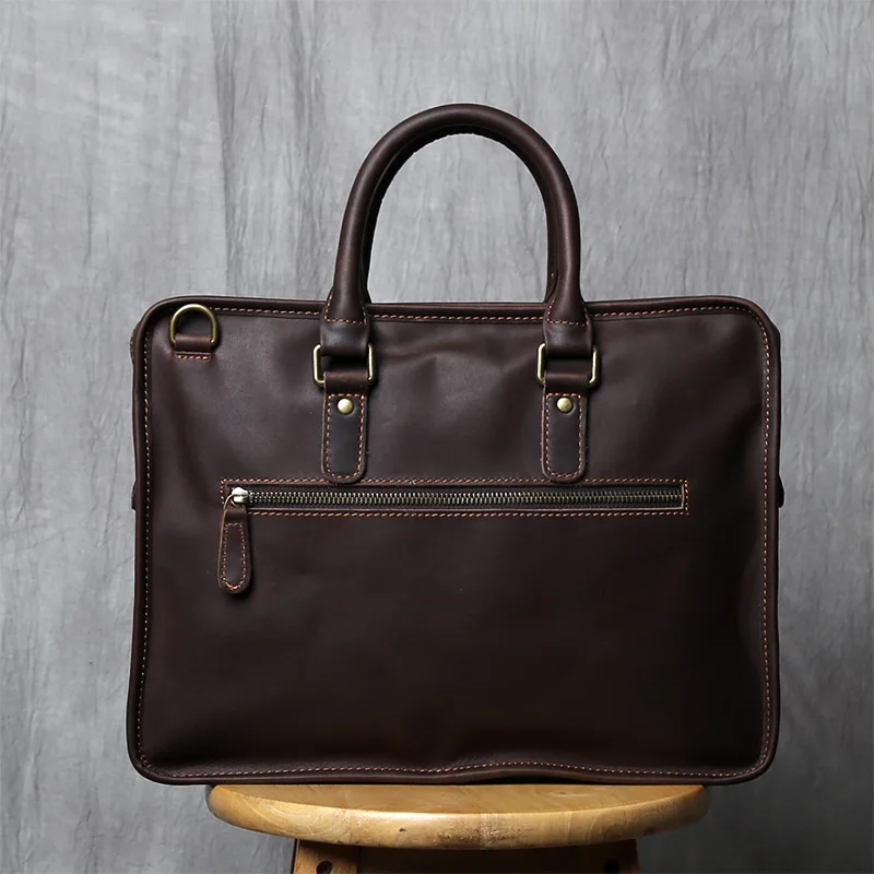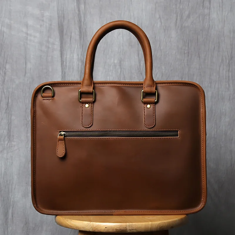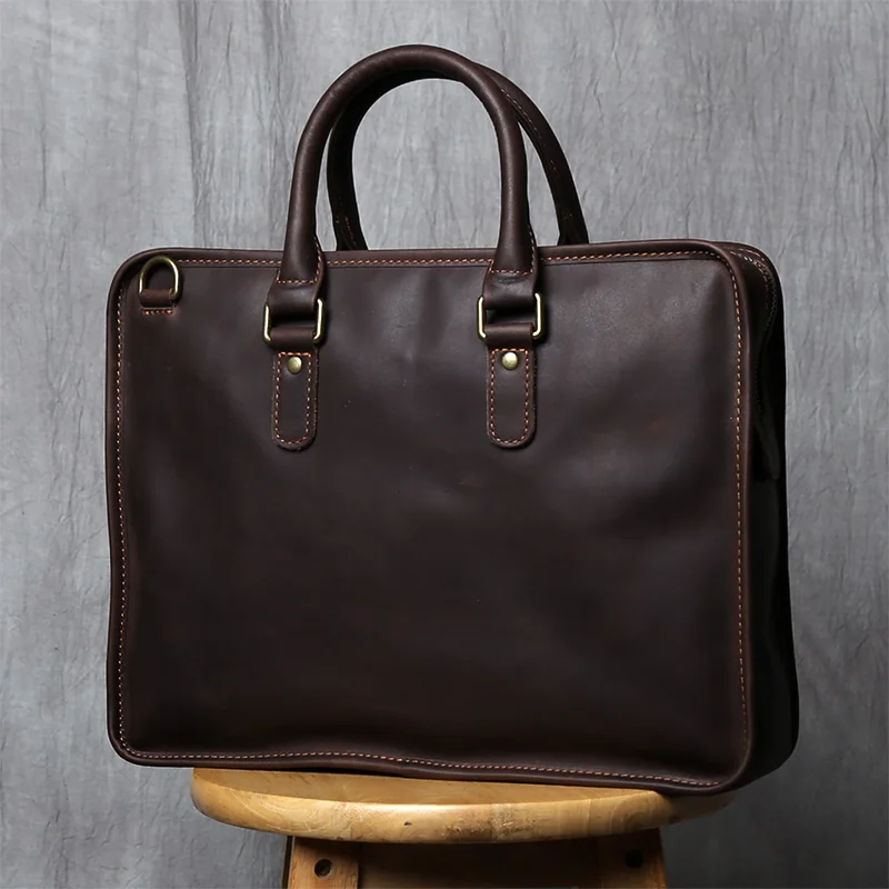 NZPJ Vintage porte-documents en cuir véritable pour hommes sac à main en peau de vache naturelle sac à bandoulière décontracté ordinateur adapté aux ordinateurs portables de 14 pouces